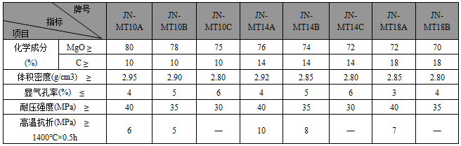 JN系列鎂碳磚主要理化指標