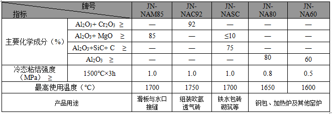 ·JN系列耐火泥主要理化指標(biāo)·